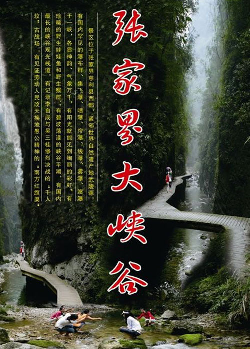 早7-8點(diǎn)左右市區(qū)定點(diǎn)集合點(diǎn)集合,游覽【張家界大峽谷】峽谷間是一條清幽的小溪,沿溪邊是用木板搭建的游道, 張家界大峽谷峽谷內(nèi)不僅有傳統(tǒng)的秀美自然風(fēng)光,還云集有三朝數(shù)代的歷史人文景觀,如記錄李自成與吳三桂慘烈決戰(zhàn)的“千人墳”古戰(zhàn)場,反映湘西歷史特色的土匪洞及見證解放初期湘西人民靠天勞作在絕壁間挖鑿的“南方紅旗渠”等。 |
